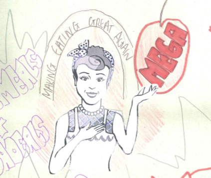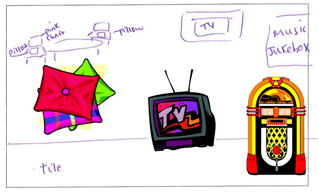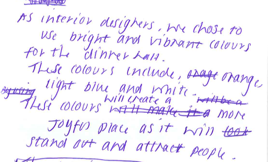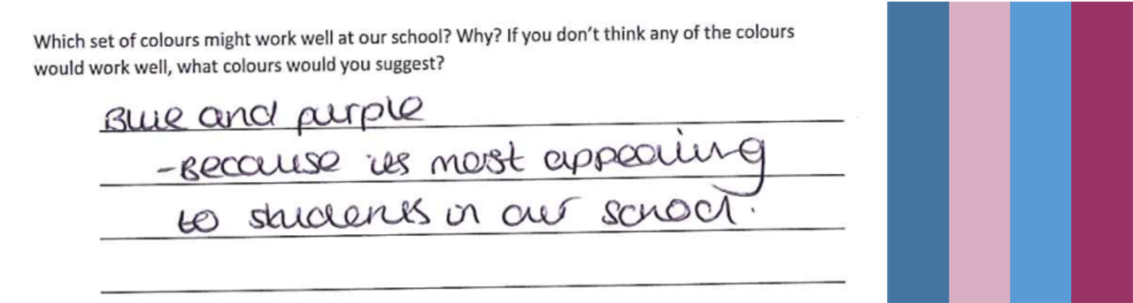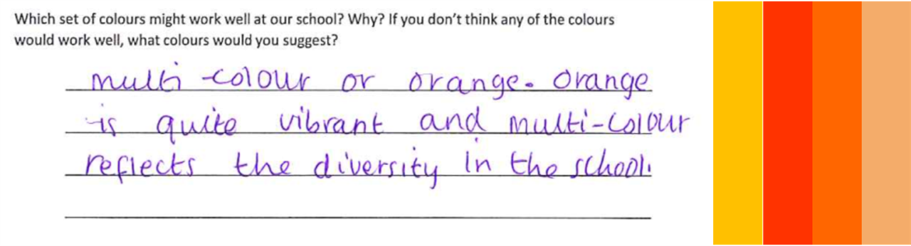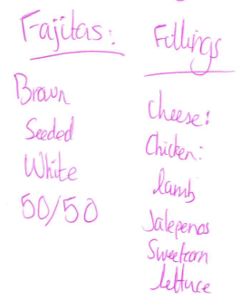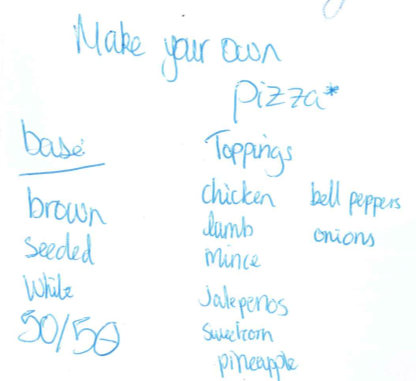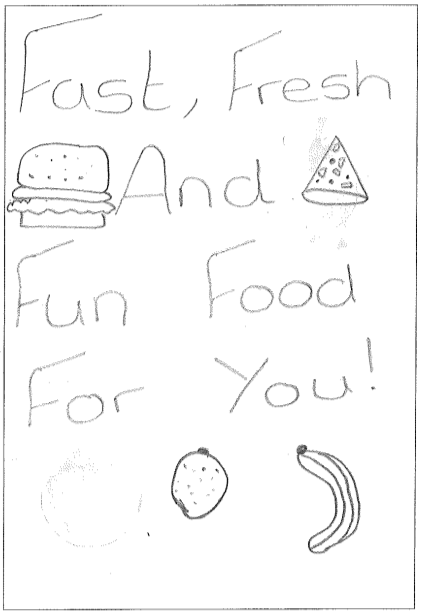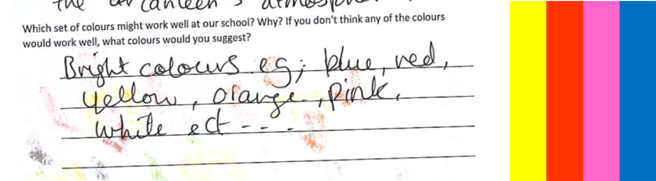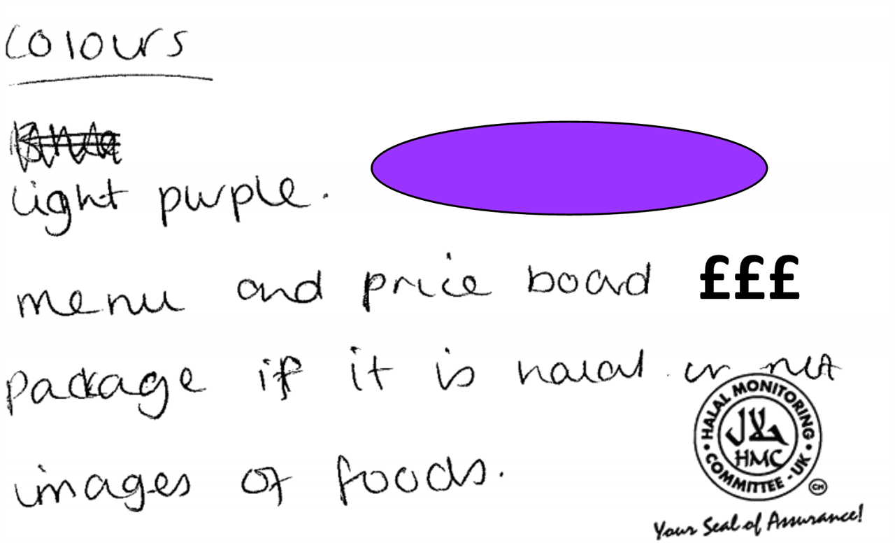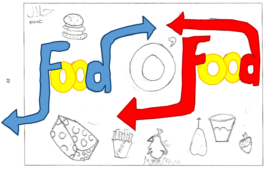We've taken some of your ideas and tweaked the colours or the layout to see how pencil drawings might work in colour or how sketches could begin to be worked up into commercial ideas. None of these are finished items - together they form a 'mood board' we can share with potential caterers to get them thinking about what our pupils want.