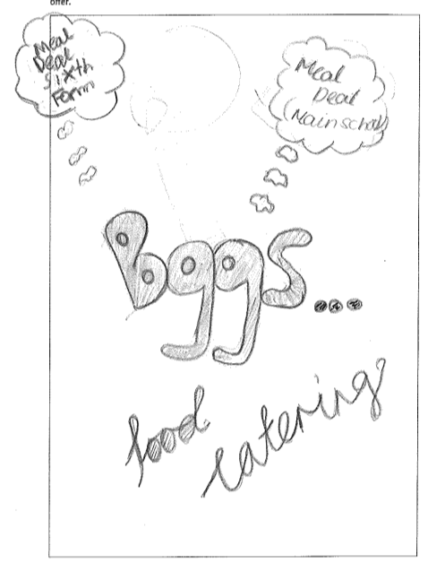 You came up with a range of interesting ideas for logos. Some of you wanted to show that this is the BGGS food offer whilst other groups wanted to created a more corporate/non-school brand. Images of animals appear in several groups' work, as do graphics of food items, slogans and clever artwork.