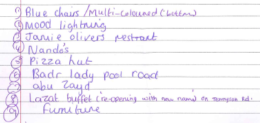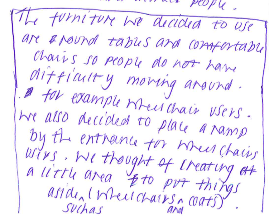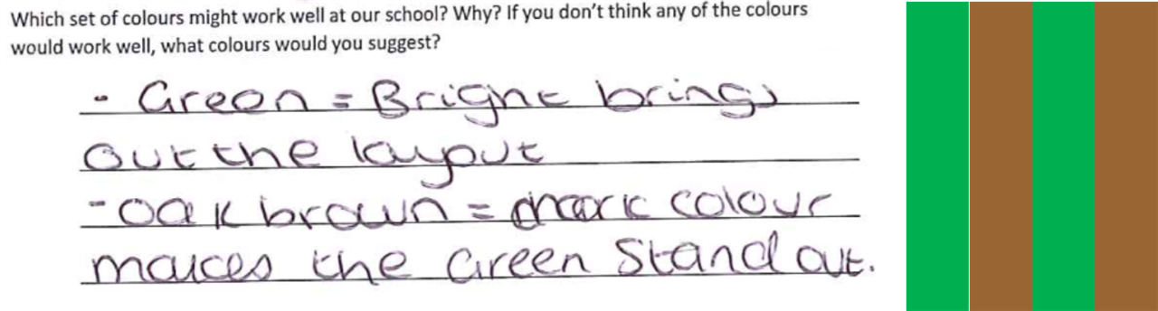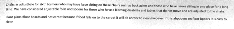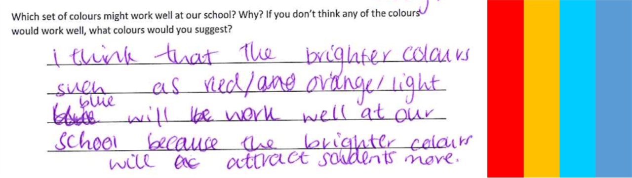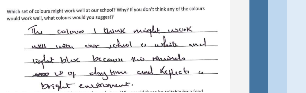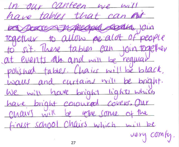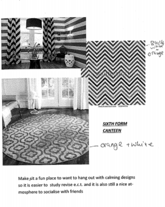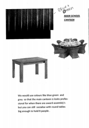 There are some very sensible suggestions about the type of furniture we should try an include along with thoughts on how to make the layout of the hall and the Sixth Form café more welcoming.