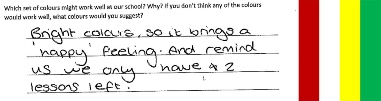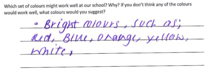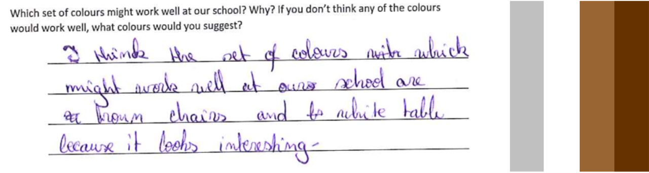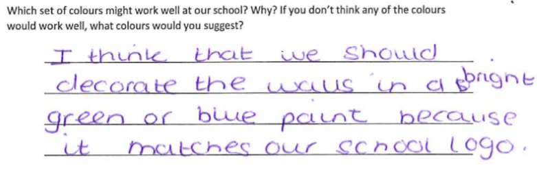 Getting agreement about which colours to use in any redecoration might be difficult; you all made very different suggestions about which colour schemes you prefer. We have included a selection of colour schemes and comments here.