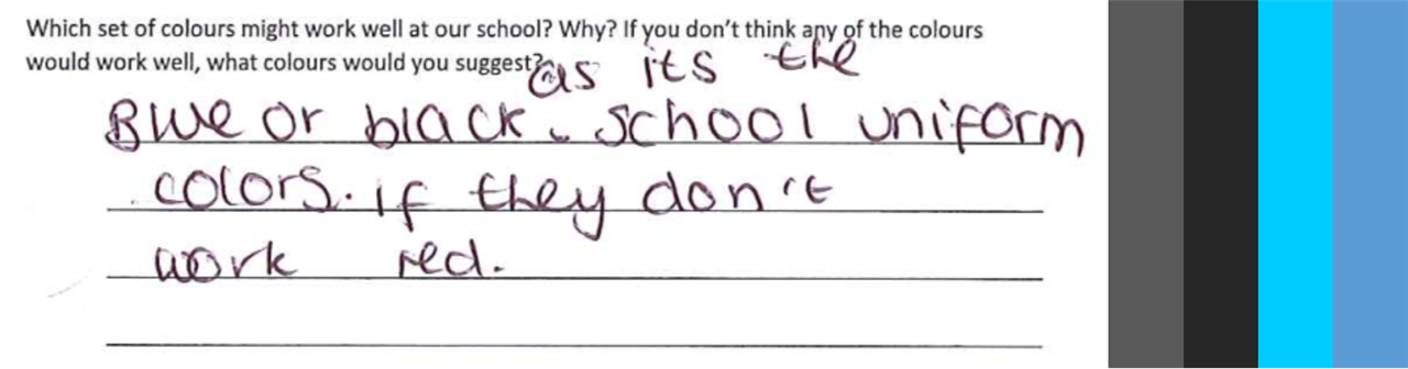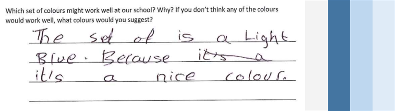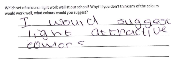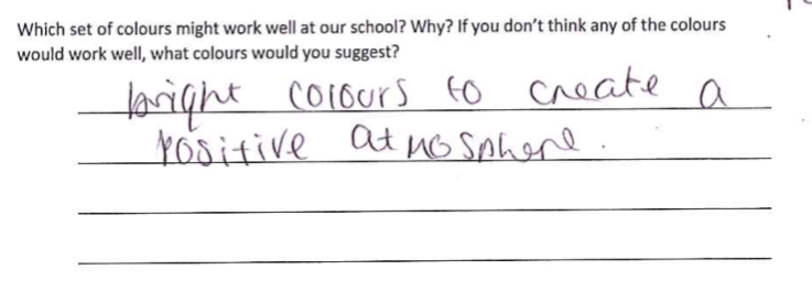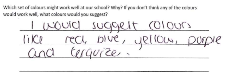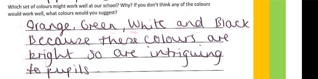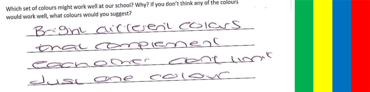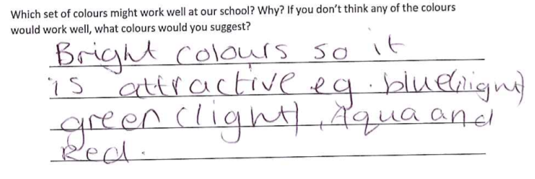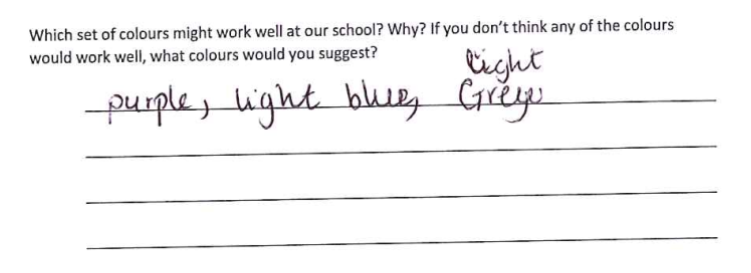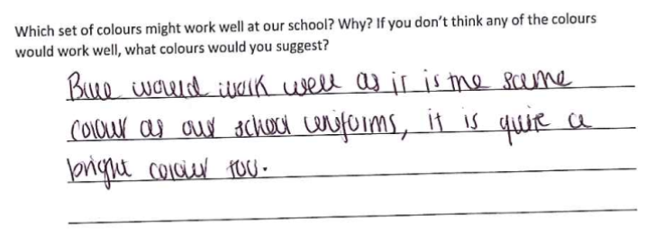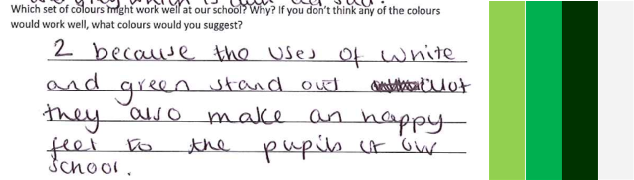 Getting agreement about which colours to use in any redecoration might be difficult; you all made very different suggestions about which colour schemes you prefer. We have included a selection of colour schemes and comments here