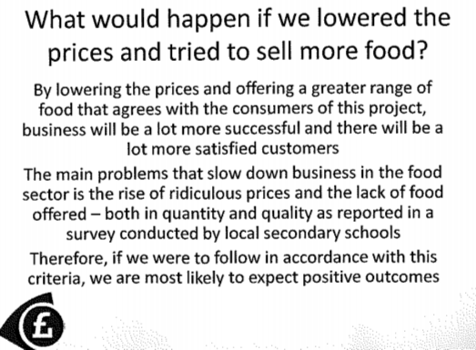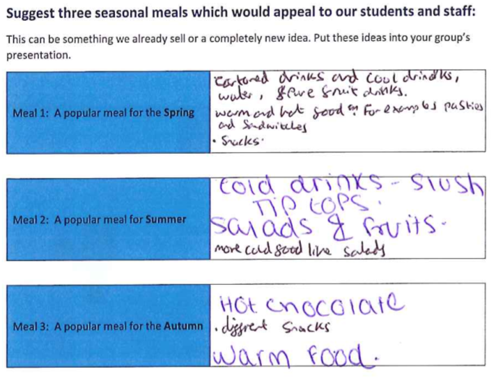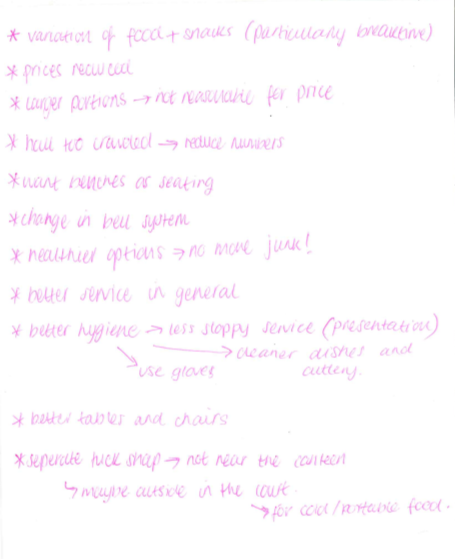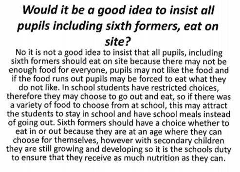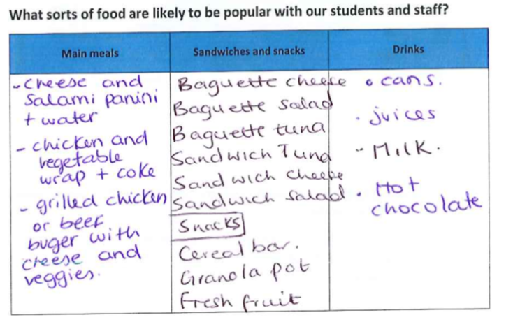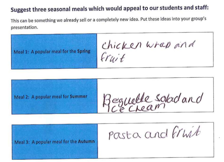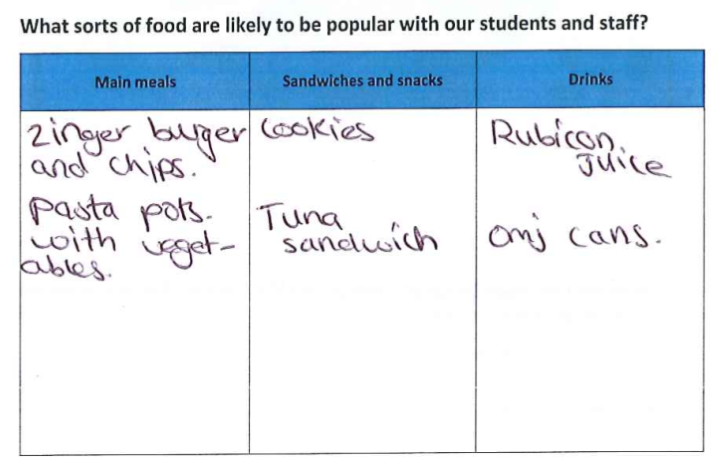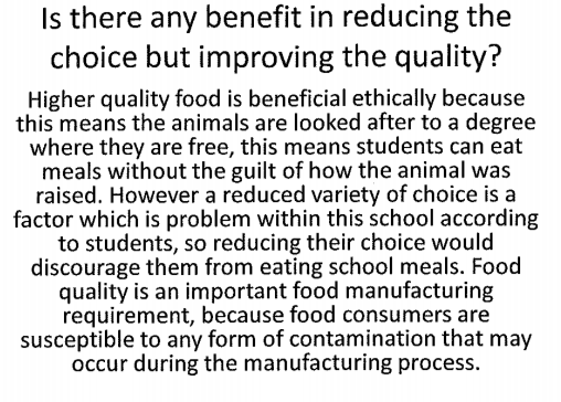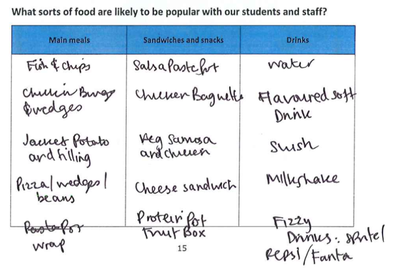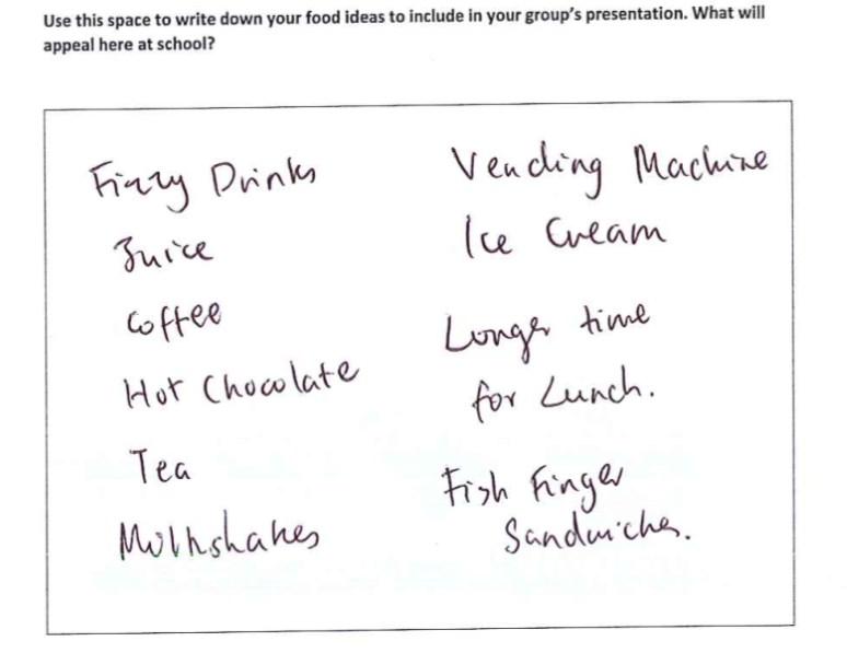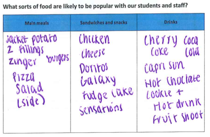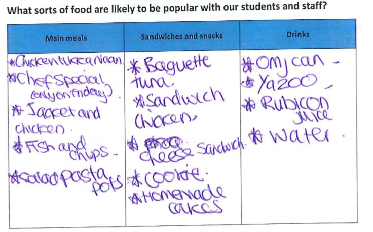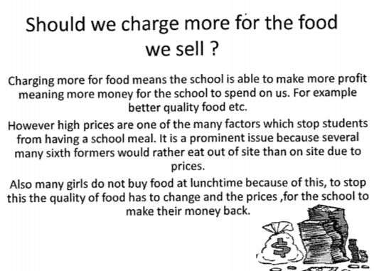 In your presentations, you made lots of proposals to create a catering service for BGGS which would attract students and make pupils and staff feel proud to be part of this school. In doing so, you also commented on ways in which the food here needs to improve.